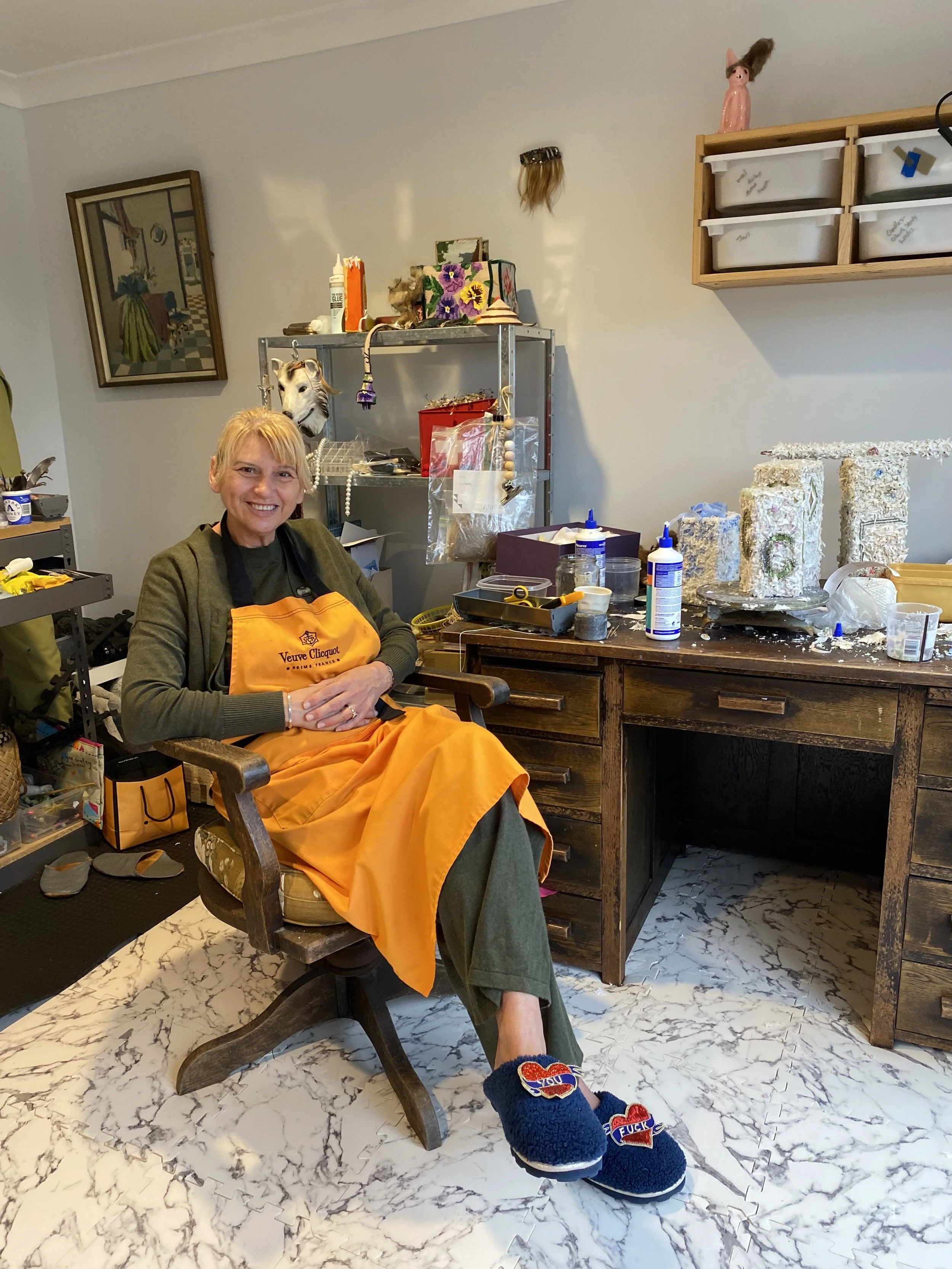 Whilst juggling motherhood, Lisa discovered a new acceptance of her busy mind and the confidence to use art as a creative outlet. She works out of her creative studio at home and whenever possible, recycles and re uses items, giving them a new lease of life.